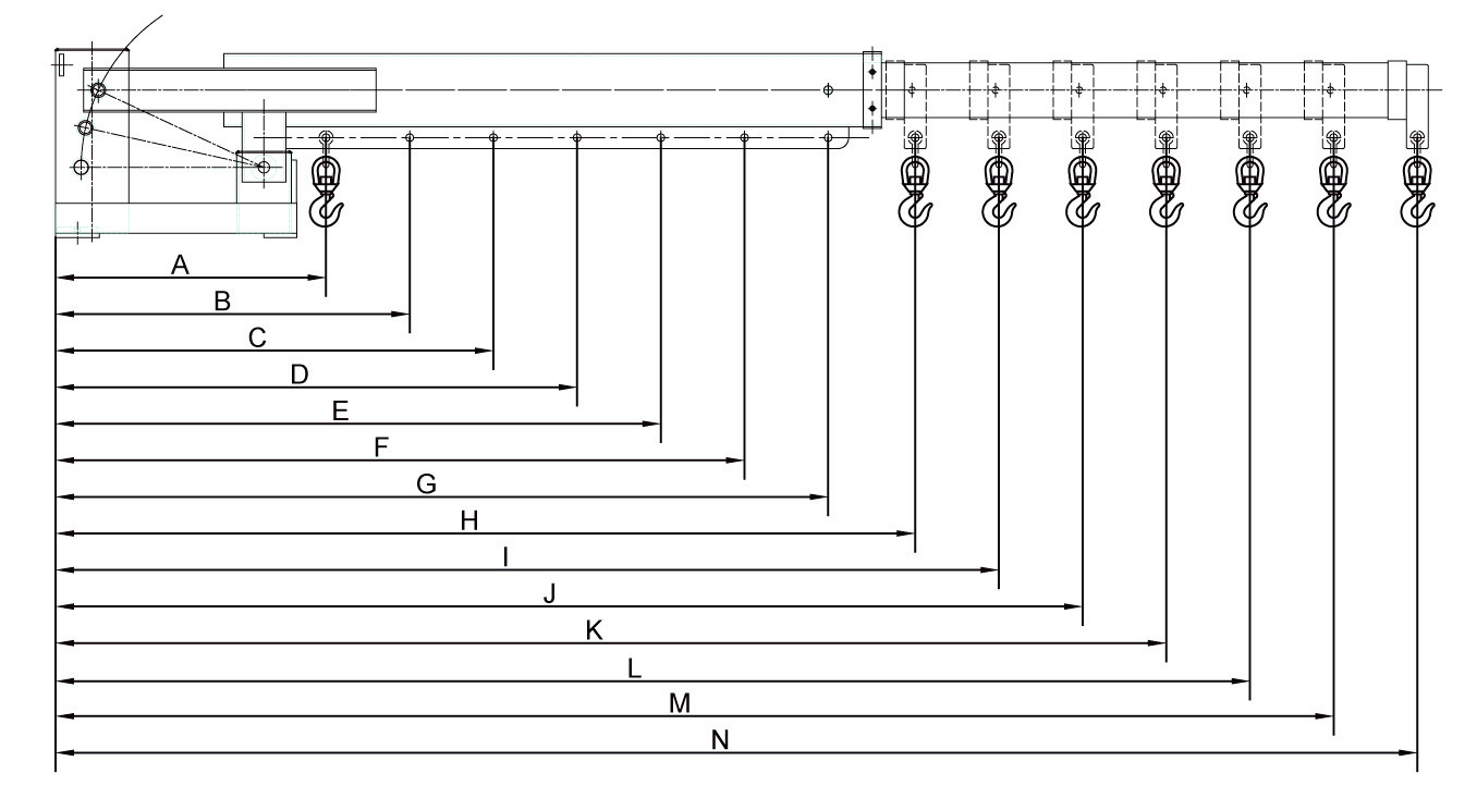 Praktisk truckkran för tunga lyft där det normalt är svårt att komma intill. Kranen är ställbar i höjd upp till 40° och når 3726 mm i sitt yttersta läge.