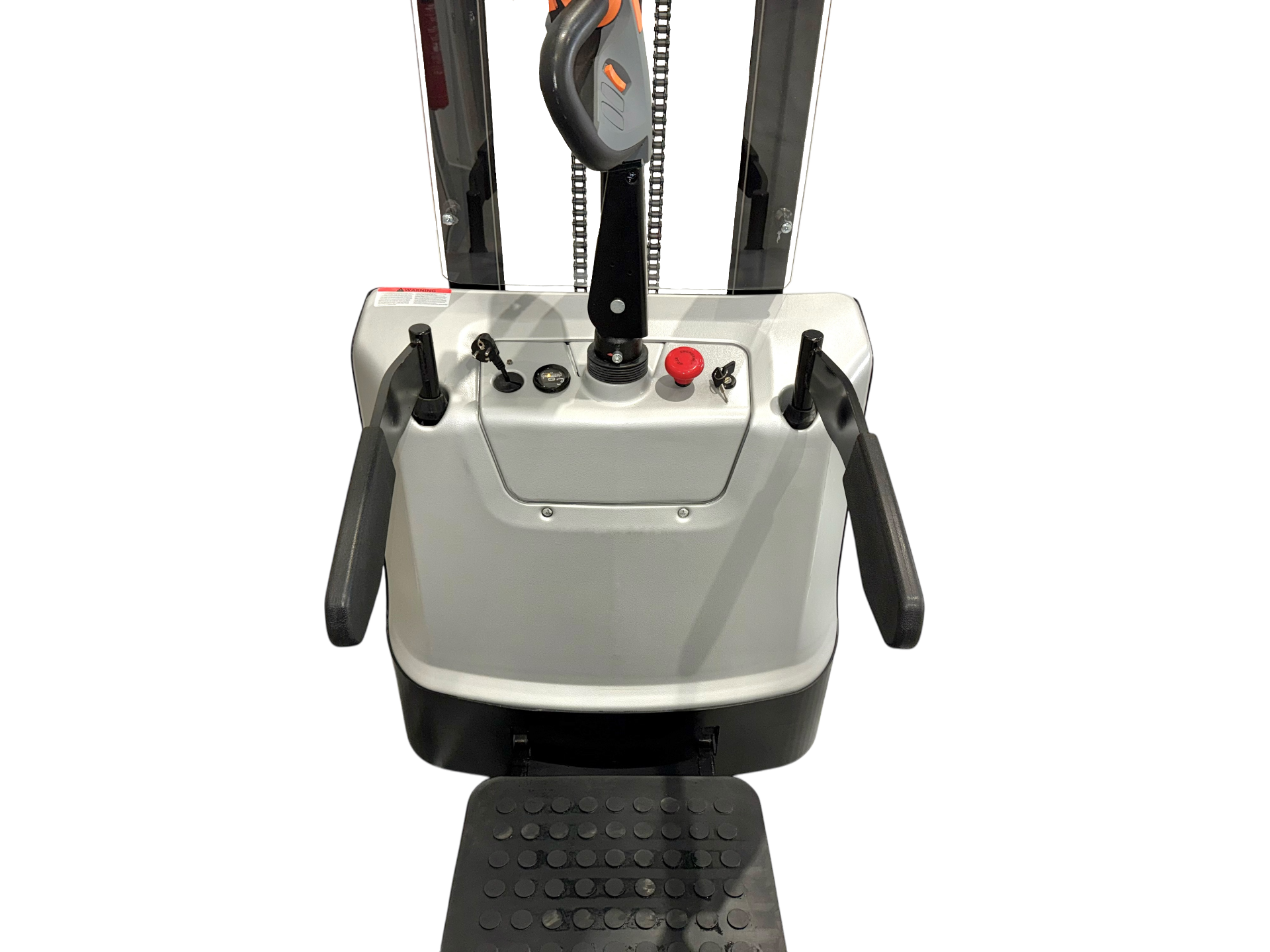 Silverstone ES1536P är en kompakt fullelektrisk staplare med åkplatta. Smidig laddning via 230V uttag, inbyggd laddare.