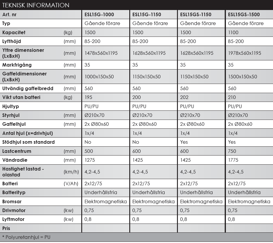 En smidig och professionell motorlyftvagn. Underhållsfria batterier 2x12V/75Ah batteri och inbyggd laddare. Maskinen är utrustad med elektromagnetisk broms för kontroll och minskat slitage. Ett genomgående säkerhetstänkande har resulterat i krypkörningsfunktion. Ergonomiskt utformat handtag och kontroller gör maskinen bekväm och lättkörd samt sparar armar och axlar hos föraren.