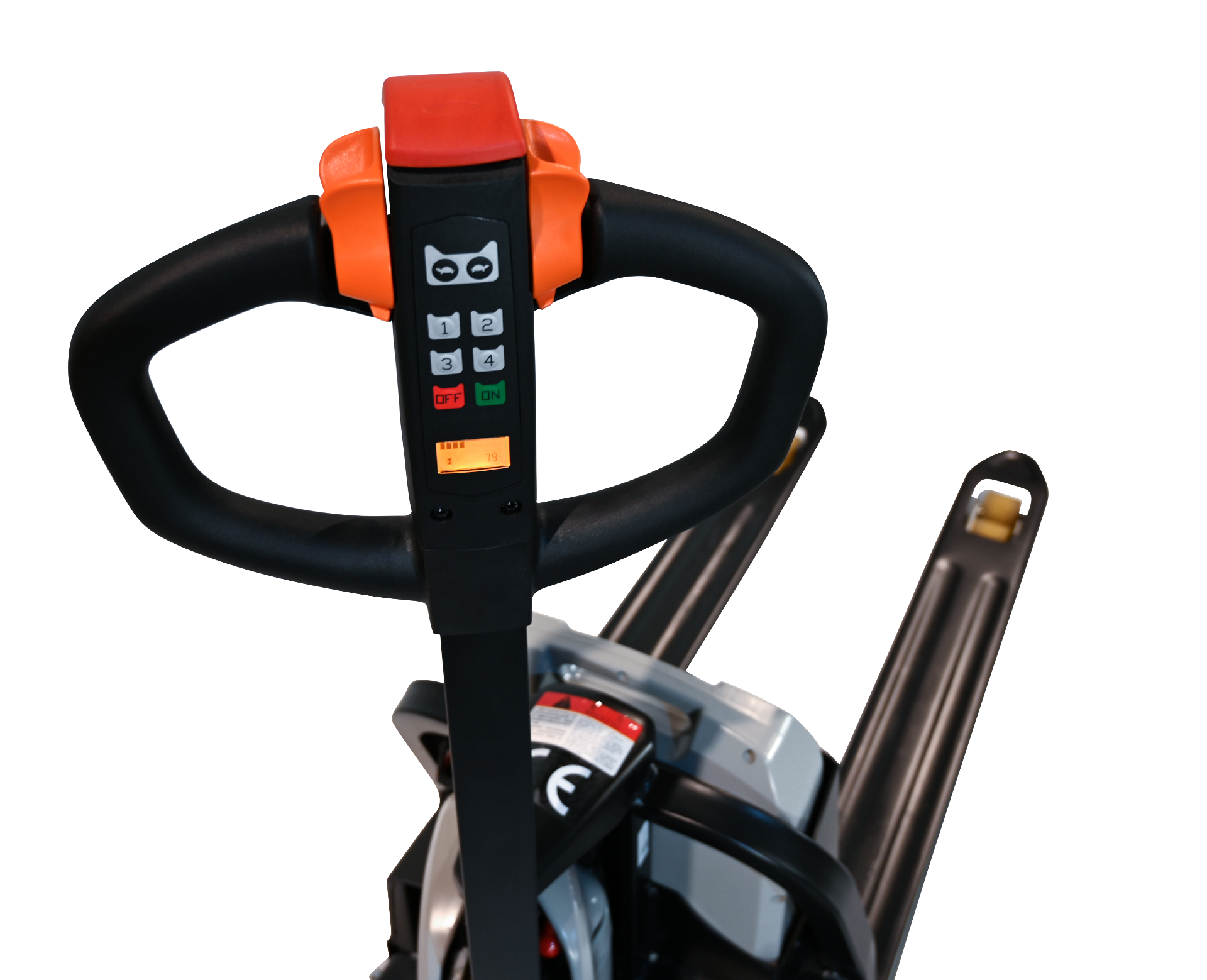 En smidig och professionell motorlyftvagn med fjädrande stödhjul.