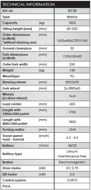 DC18 - Motorlyftvagn, litium, 1800 kg